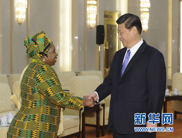 2013年2月17日,习近平在北京人民大会堂会见非洲联盟委员会主席祖马。 新华社记者 饶爱民 摄