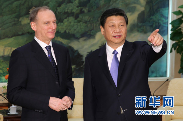 2013年1月8日,习近平在北京人民大会堂会见俄罗斯联邦安全会议秘书帕特鲁舍夫。 新华社记者 兰红光 摄