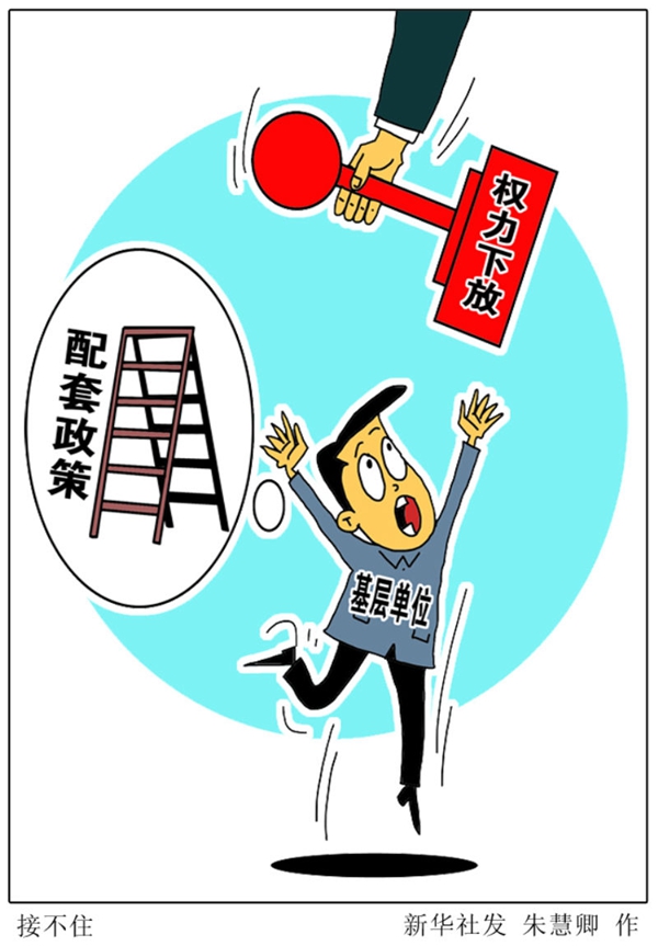 出现上述问题的部分原因在于,一些事项的权力和责任下放了,但相关的履权能力、配套政策没有同步下沉。在基层干部看来,上级把一些事项一股脑下放后,后续出现监管、服务跟不上等问题,却需要基层自己解决,上级有“甩锅”嫌疑。