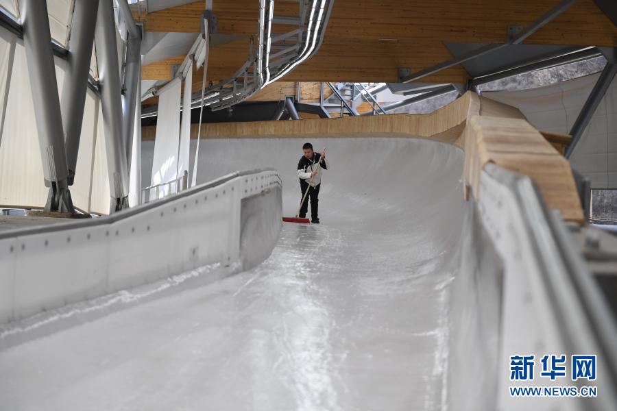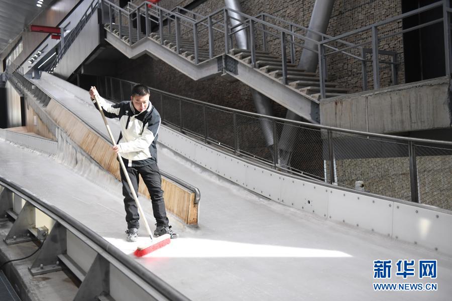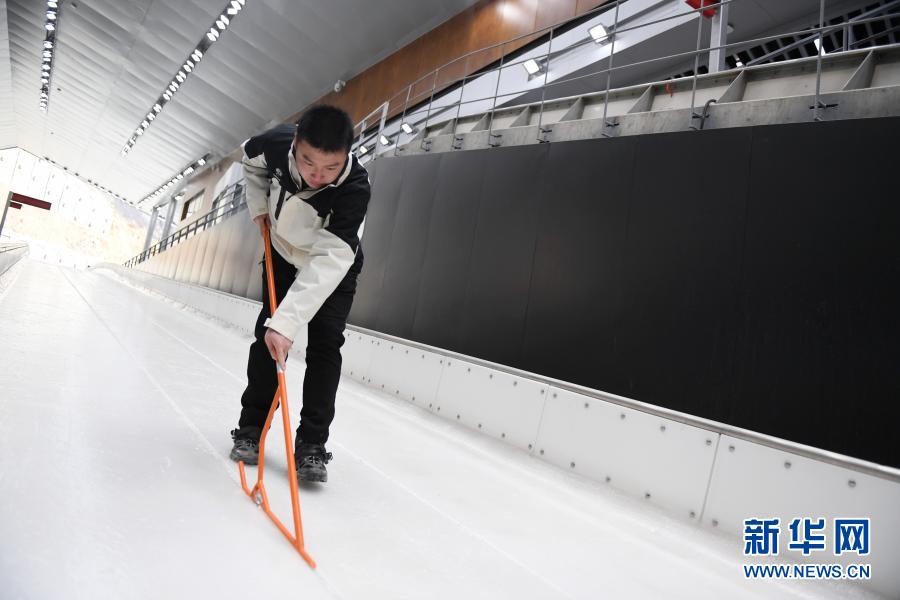 眼下,朱永涛和队友最重要的工作,就是把赛道平整度和光滑度手工打磨至最佳状态,供中国国家队日常训练安全使用。