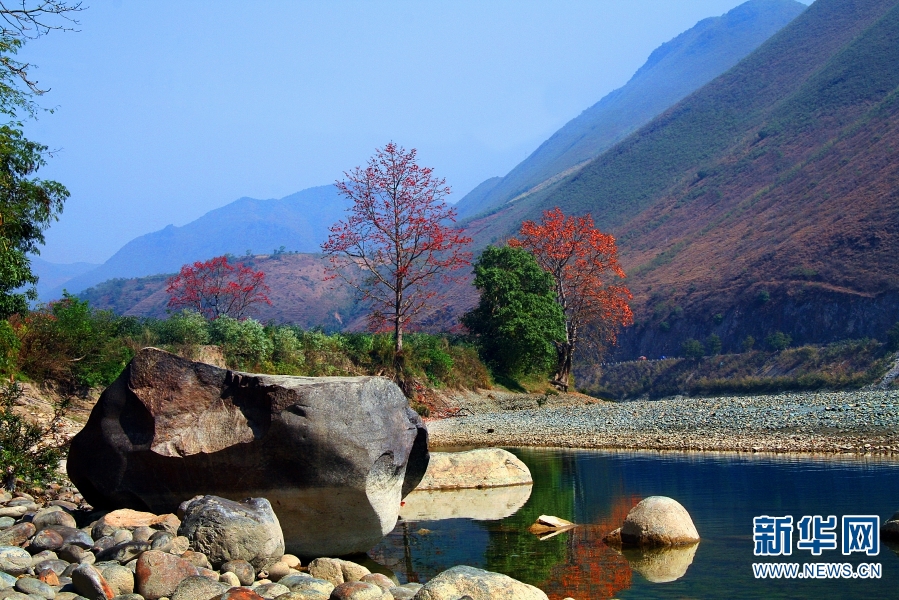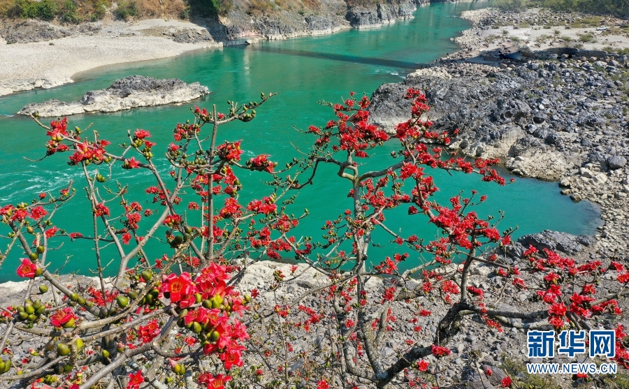 潞江坝江东木棉花开。新华网发(杨磊 摄)