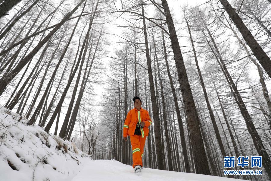 2月28日,在驼梁国家级自然保护区,巡护员戎喜民在进行巡护工作。  新华社发(梁子栋 摄)