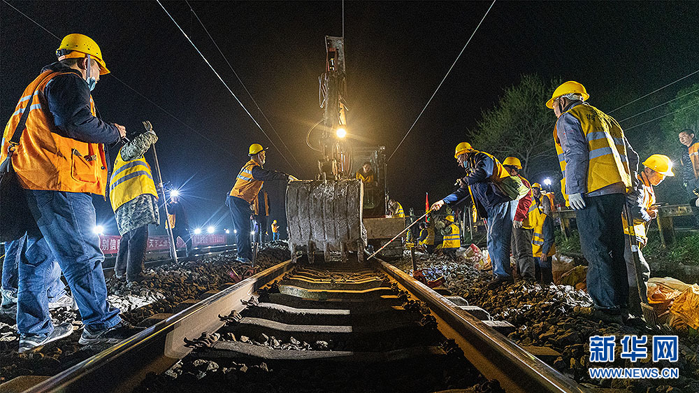 新华网武汉3月15日电 春运结束后,为改善焦柳铁路设备状况、消除线路病害,中国铁路武汉局集团公司部署了焦柳线固定设备集中修行动。近日,信阳工务段抢抓夜间天窗时段,鏖战焦柳线路基换填施工作业。