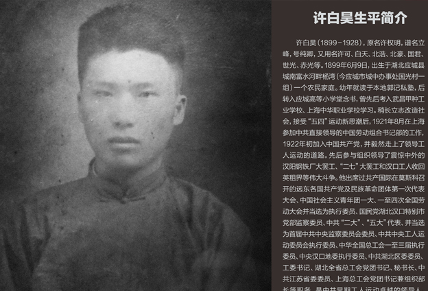 许白昊是我们湖北著名的工人运动领袖。我有一段时间集中做工人运动史的研究,主要是研究1924年到1927年这段时间。我们湖北 是这个历史时期工人运动最重要的一个地方,所以许白昊自然也是我需要了解、需要研究的人物。