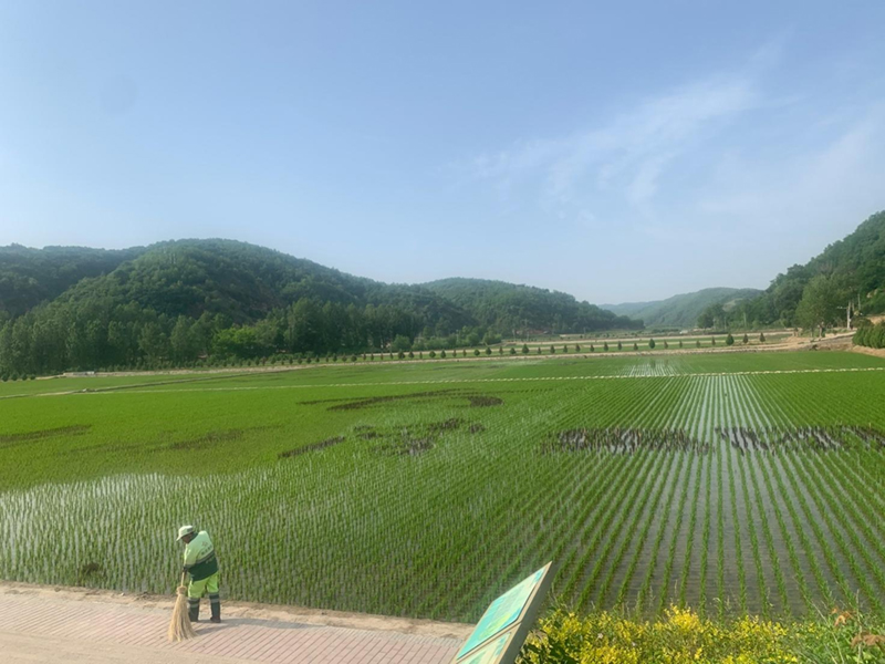 时令刚过芒种,新插的秧苗在水田里泛着青色的光,不远处的山林绿意盎然,俨然一派“江南风光”。从当年荆棘遍布、荒无人烟到如今牛羊满川、稻浪起伏,这片红色的土地靠自力更生、艰苦奋斗的革命精神完成蜕变,如今又在冉冉岁月中再焕新颜。