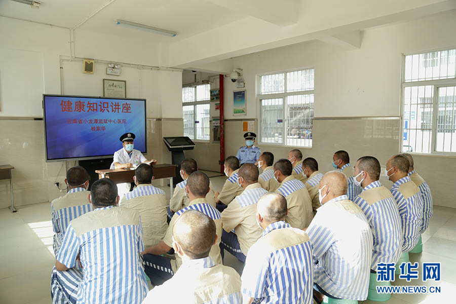 作为一名警察和医生,在多年的工作中,桂家华把医治工作与管理教育紧密结合,摸索出艾滋病罪犯管理“六大要素”、精神病罪犯“四同步一训练”、传染病防治“管理五步走”等特殊病患的治疗方法。图为桂家华在为服刑人员开展健康知识讲座。新华网发(念新洪/文 王宏兵/摄)