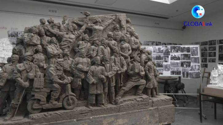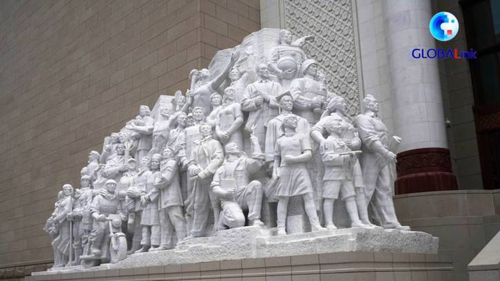 中国共产党历史展览馆西侧广场上,名为《伟业》的雕塑庄严矗立。