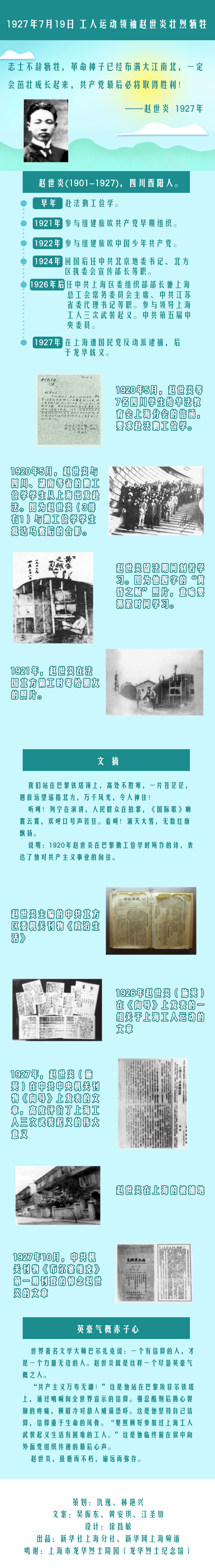 94年前的7月19日,我国著名工人运动领袖赵世炎在上海英勇就义,把26岁的青春和满腔热血献给了革命事业。在上海市龙华烈士陵园,赵世炎与陈延年(陈独秀长子)的烈士墓紧紧挨在一起。以下是赵世炎生平、事迹长图。