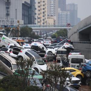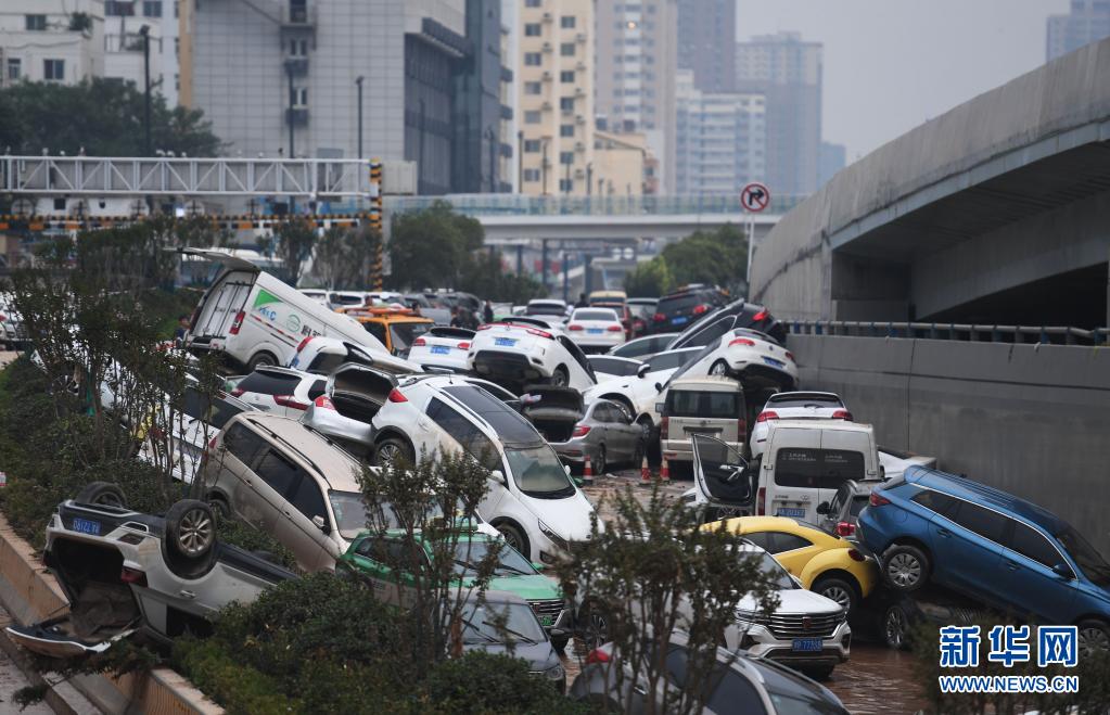 7月22日在郑州京广路隧道南出口拍摄的车辆。新华社记者 张浩然 摄