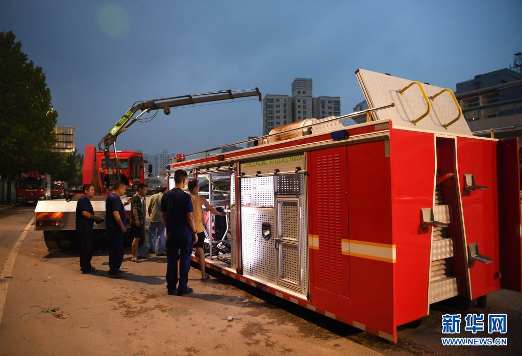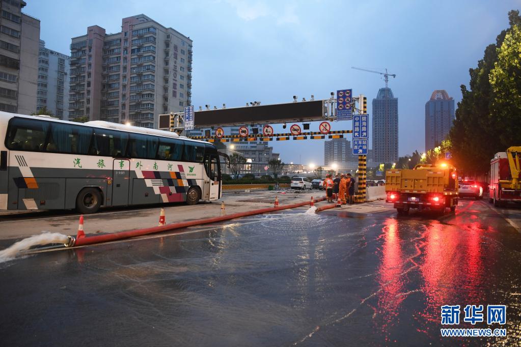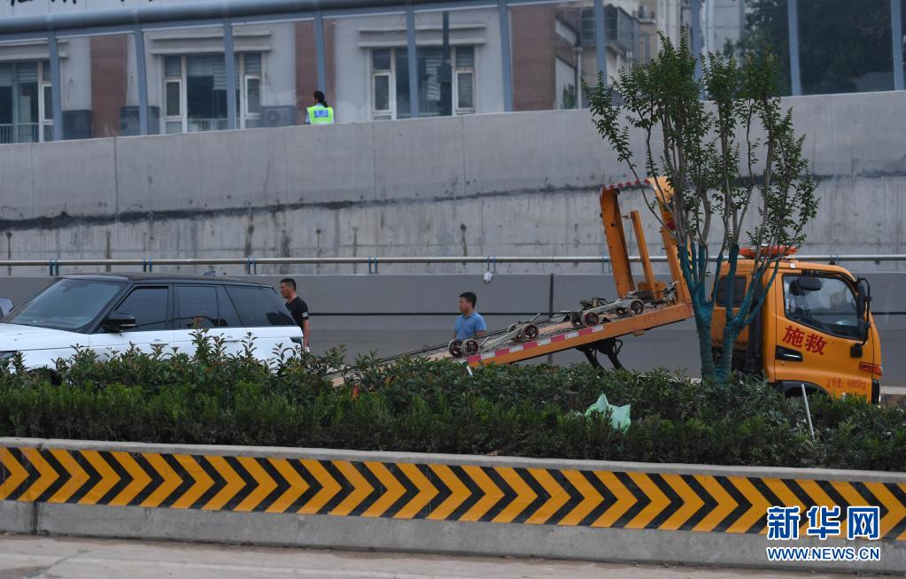 7月22日,在郑州京广路隧道口,救援人员对隧道积水进行抽排。新华社记者 张浩然 摄