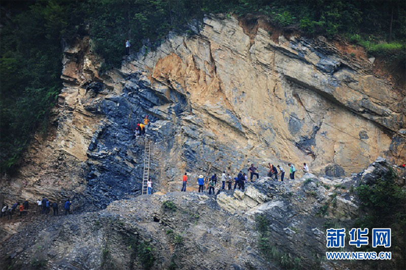 图为店子坪村村民从深山绝壁凿出一条出山路。(资料图片)