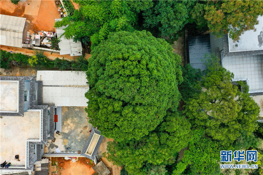 “绿树村边合,青山郭外斜。”在云南省安宁市禄脿街道艾家营村委会大庄村,栽种着500余棵滇翠柏。除了滇翠柏,村里还有数十棵树龄在百年以上的黄栎树、桂花树等。大庄村风景秀丽,空气清新,众多参天古树更是吸引了不少游客。新华网发(杨云萍 谢钢 杨鸿 王建摄影报道)