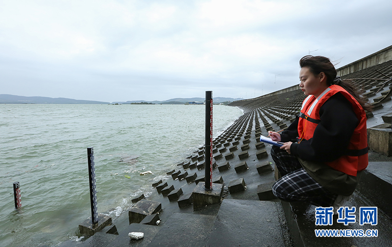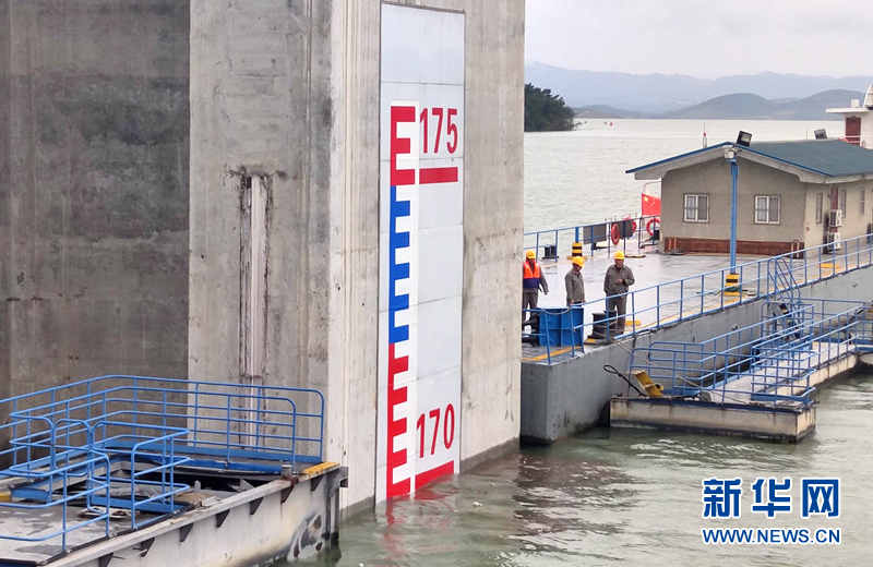 10月10日,长江委水文汉江局职工张洁芳人工校核丹江口水库坝前水位。新华网发 胡文波摄