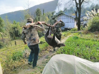 事实上,通江境内野猪数量已达到非捕杀不可的地步。“七八月份,苞谷、红薯成熟了,野猪经常下山啃玉米、拱红薯,偶尔还伤人。我们年纪大了,不敢招惹它。”唱歌镇干渔沟村一张姓村民无奈地说。