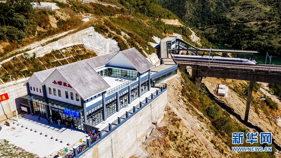航拍视角下的小湾东站(摄于11月6日)。新华网发(陈畅/摄)