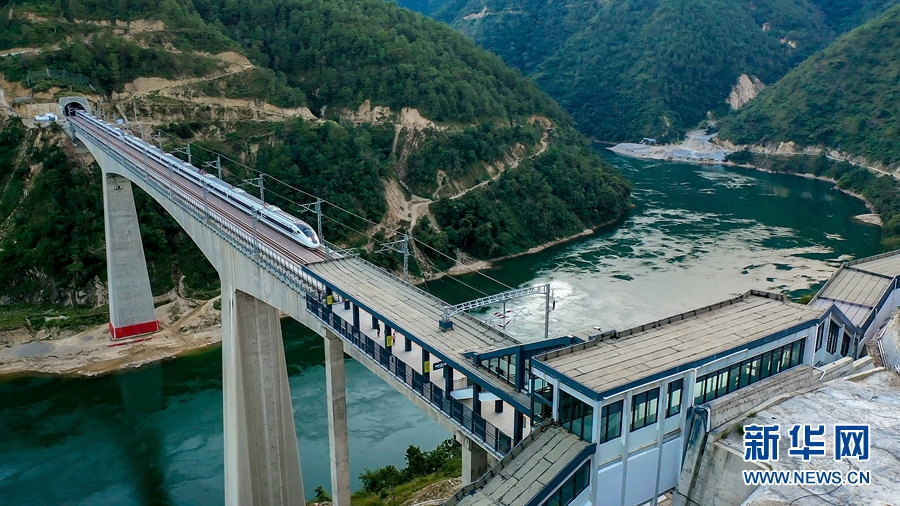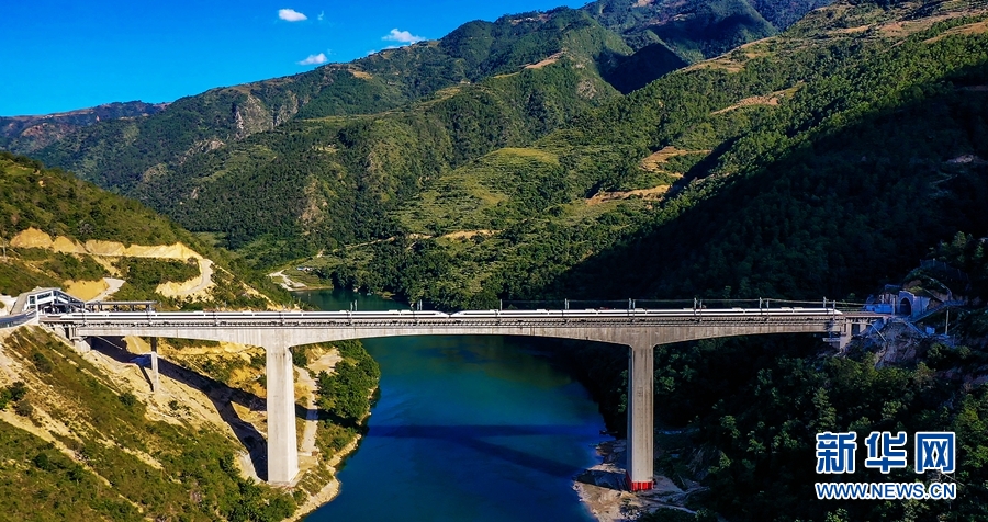 航拍视角下,半隧半桥的小湾东站(摄于11月6日)。新华网发(陈畅/摄)