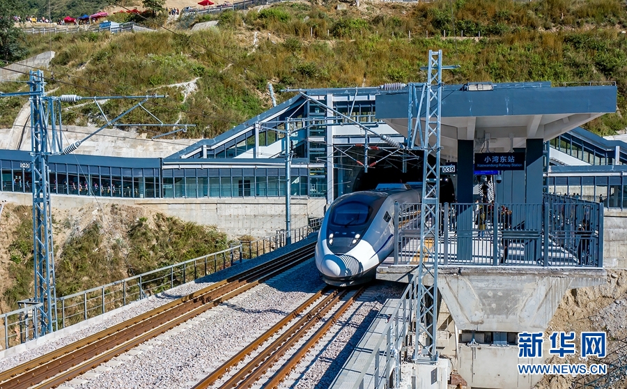 一列动车驶入小湾东站(摄于11月6日)。新华网发(陈畅/摄)