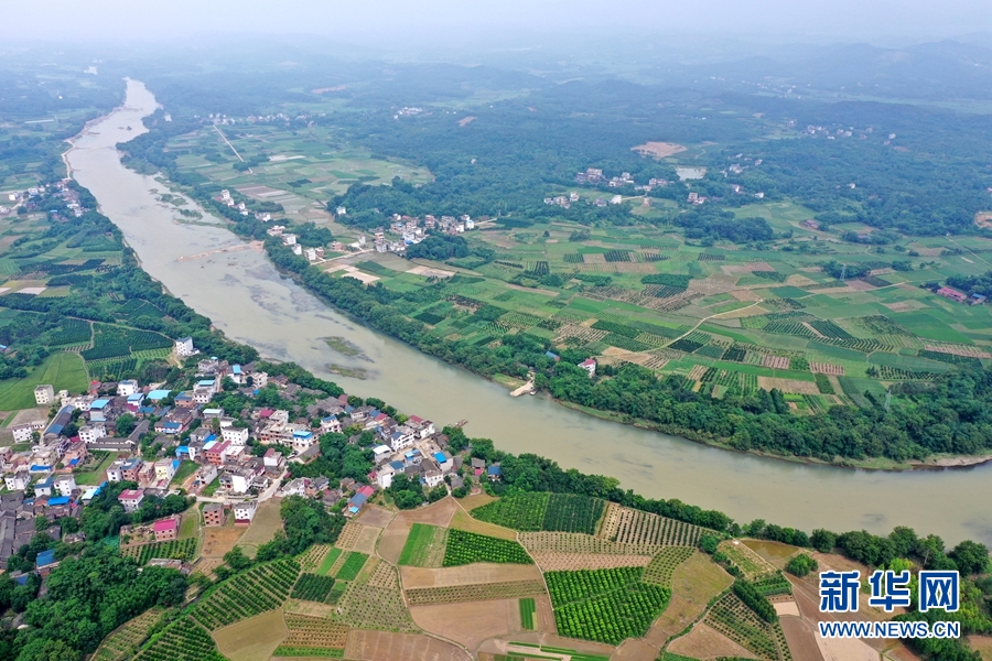 这是位于广西全州县凤凰镇的凤凰嘴湘江河段(2019年6月29日无人机拍摄)。新华社记者 陆波岸 摄