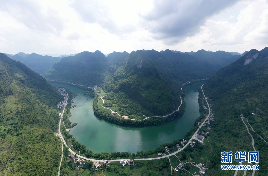 这是广西都安瑶族自治县菁盛乡境内红水河两岸的公路(2021年9月1日摄,无人机照片)。新华社记者 陆波岸 摄