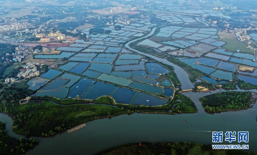 这是广西钦州市钦江沿岸的虾塘景色(2018年11月13日无人机拍摄)。新华社记者 张爱林 摄