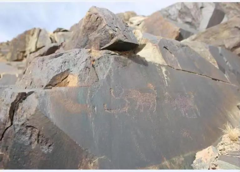 岩画内容主要表现了先民狩猎、舞蹈、畜牧的场景。各类动物的个体和群体的形象,有野牦牛和家牦牛,野骆驼和家骆驼。还有马、鹿、狼、豹、狗、鹰、熊、羊等。