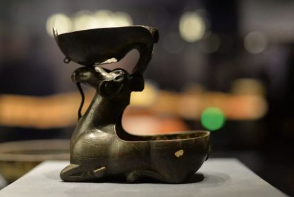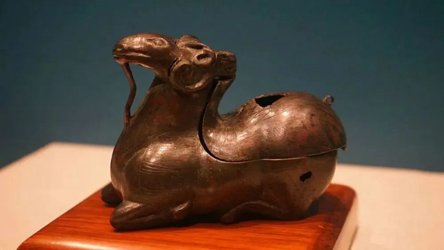 青海省博物馆藏——卧式羊形铜灯。(青海省博物馆供图)