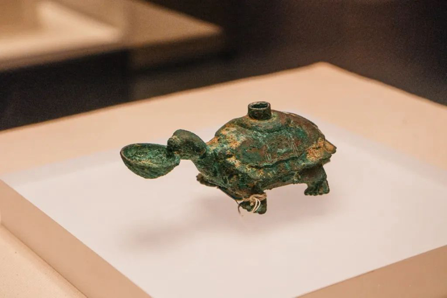 晚上点上烛火“秒变”灯具,白天翻下羊背不仅可作案头精致摆件,还可以防止灰尘混入灯油。一盏小小的灯都能精细到这种程度,汉代的工艺制作水平由此可见一斑。