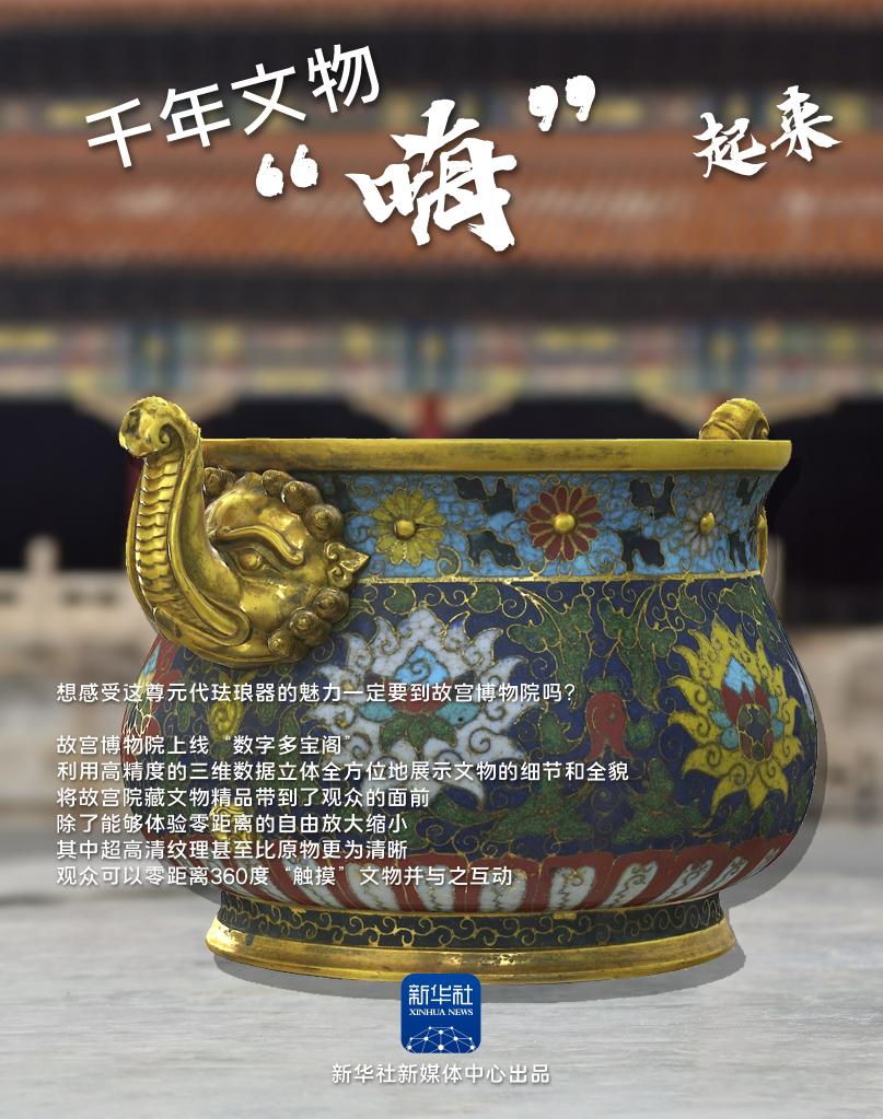 故宫博物院数字与信息部主任苏怡介绍,故宫博物院官网下设“数字多宝阁”栏目,利用高精度的三维数据立体全方位地展示文物的细节和全貌,将故宫院藏文物精品带到了观众的面前,除了能够体验自由放大缩小,观众可以360度“触摸”文物。