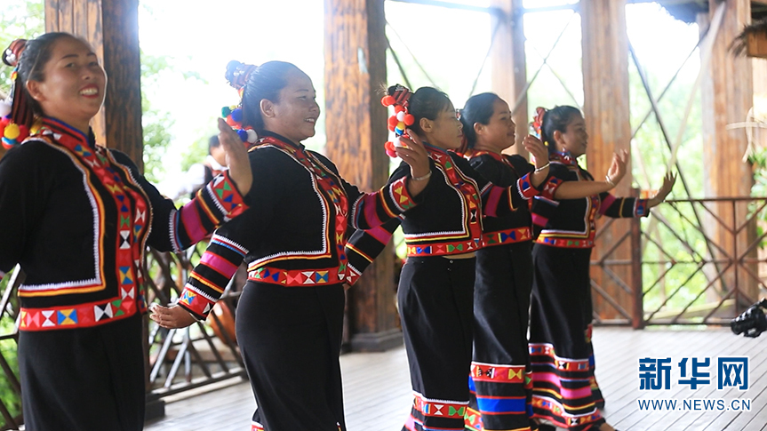 老达保村民在为游客表演歌舞(6月9日摄)。新华网 李浩 摄