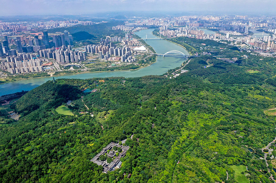 广西南宁市邕江两岸景色,城市里四季绿树成荫,芳草遍地,呈现“半城绿树半城楼”的宜人风貌。(新华社记者 陆波岸 摄)。