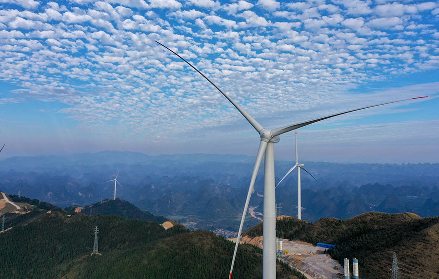 广西柳州市融安县东起乡白云岭风电场一期项目风力发电机组。(新华社记者 黄孝邦 摄)