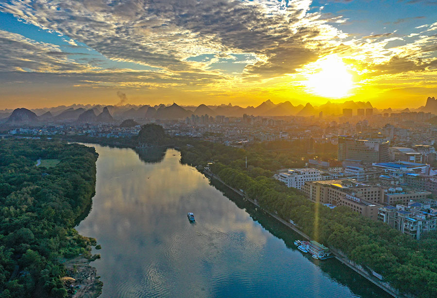 广西桂林市城区漓江沿岸风光。(新华社记者 周华 摄)