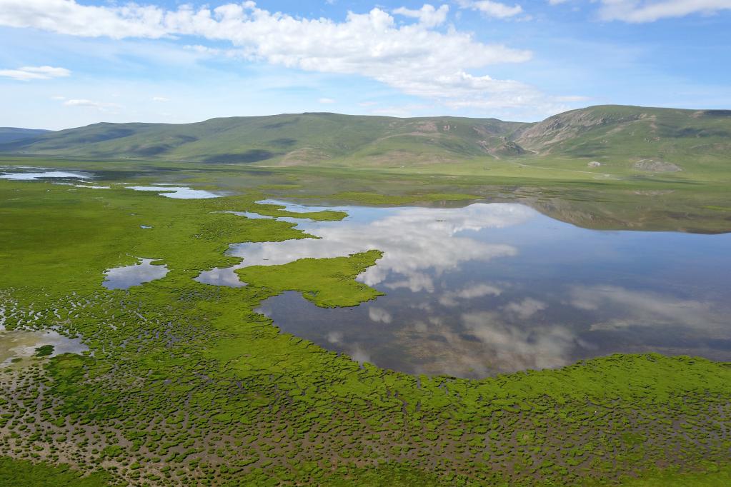 这是2022年7月16日在青海玉树藏族自治州杂玉树市隆宝镇境内拍摄的青海隆宝国家级自然保护区景色(无人机照片)。新华社记者 范培珅 摄