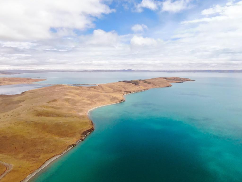 这是2021年10月20日在青海省果洛藏族自治州玛多县境内拍摄的扎陵湖一角。新华社记者 张龙 摄
