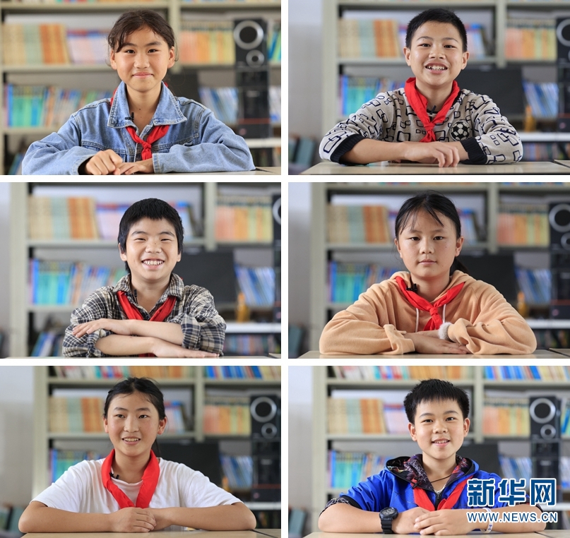2020年到落松地小学采访的时候,整个学校只有四年级一个班、7名学生。时隔两年,教室门口的牌子从“四年级”换成了“六年级”,班里除1名女生转学外,6张熟悉的面孔都还在。图为学生们在镜头前微笑留影(摄于2022年7月5日)。(新华网 赵普凡/摄)