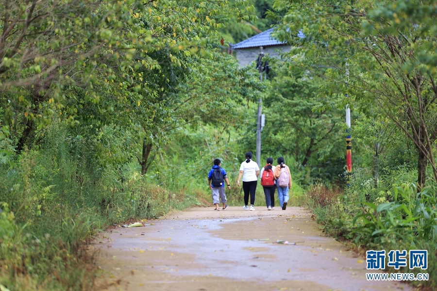 图为朱丽丹和学生们走在村里的小路上。加入落松地小学两年来,朱丽丹最为触动的,是学生们的独立和懂事,“他们的父母都在外面打工,小小年纪放学后还要做饭,干农活,照顾残疾的爷爷奶奶。”朱丽丹说,毕业后,希望学生们带着善良、正直、勇敢,继续往前走(摄于2022年7月5日)。(新华网 赵普凡/摄)