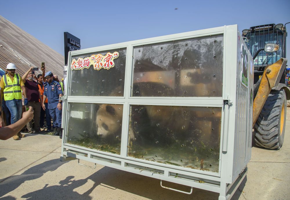 10月19日,大熊猫抵达卡塔尔首都多哈的豪尔熊猫馆。新华社发(尼库摄)