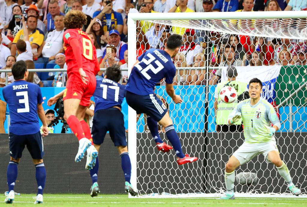 资料图:2018年7月2日,在顿河畔罗斯托夫进行的2018俄罗斯世界杯足球赛八分之一决赛中,比利时队以3比2战胜日本队,晋级八强。新华社发