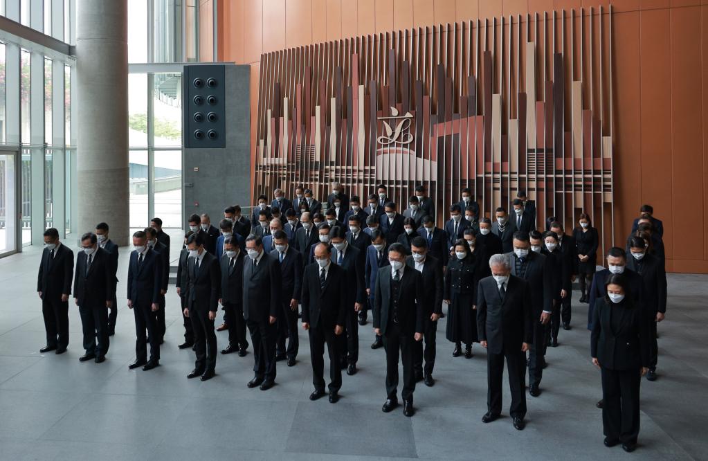 12月6日上午,中共中央、全国人大常委会、国务院、全国政协、中央军委在北京人民大会堂隆重举行江泽民同志追悼大会。举国上下,各族人民沉痛悼念江泽民同志。这是香港立法会议员肃立默哀。新华社发