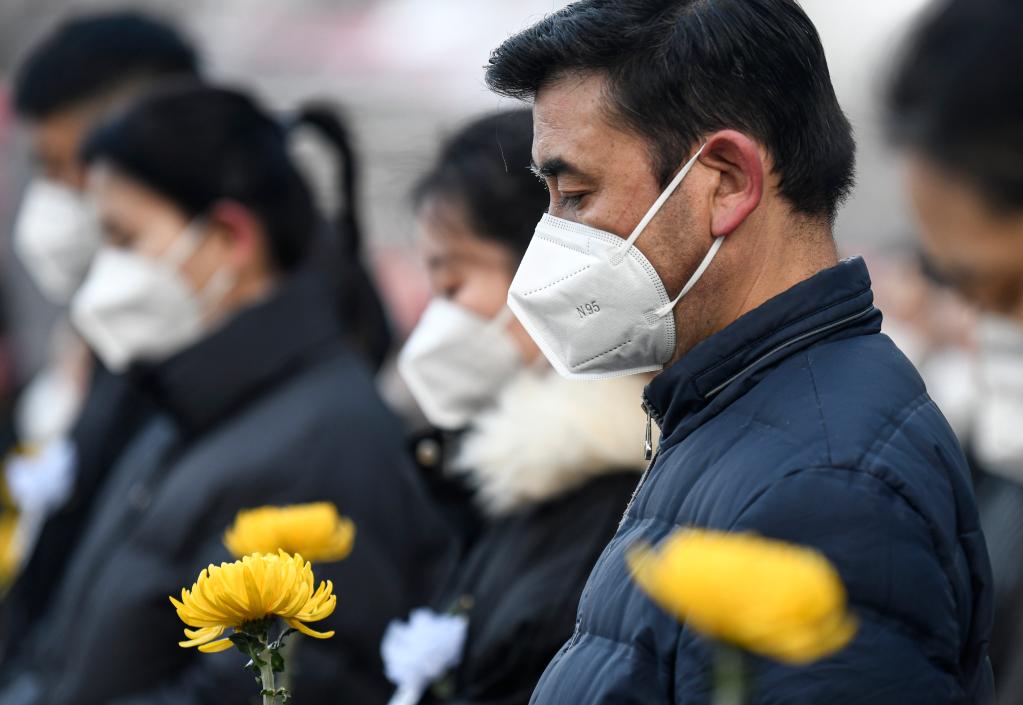 12月6日上午,中共中央、全国人大常委会、国务院、全国政协、中央军委在北京人民大会堂隆重举行江泽民同志追悼大会。举国上下,各族人民沉痛悼念江泽民同志。这是在山东省青岛市,干部职工肃立默哀。新华社记者 李紫恒 摄