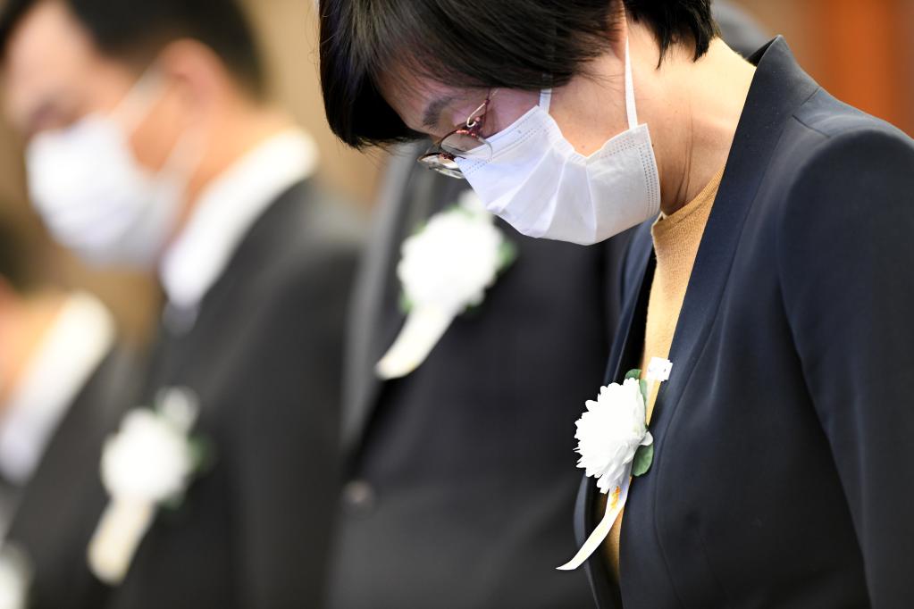 12月6日上午,中共中央、全国人大常委会、国务院、全国政协、中央军委在北京人民大会堂隆重举行江泽民同志追悼大会。举国上下,各族人民沉痛悼念江泽民同志。这是在上海交通大学,师生代表肃立默哀。新华社记者 刘颖 摄