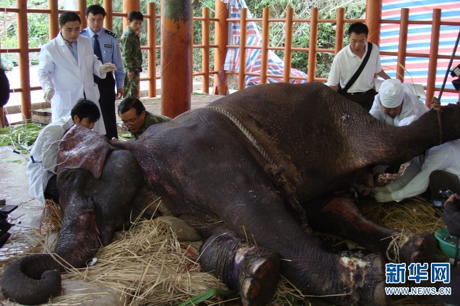 “平平”留下了尿失禁的后遗症(资料图)。新华网发(西双版纳亚洲象救护与繁育中心 供图)