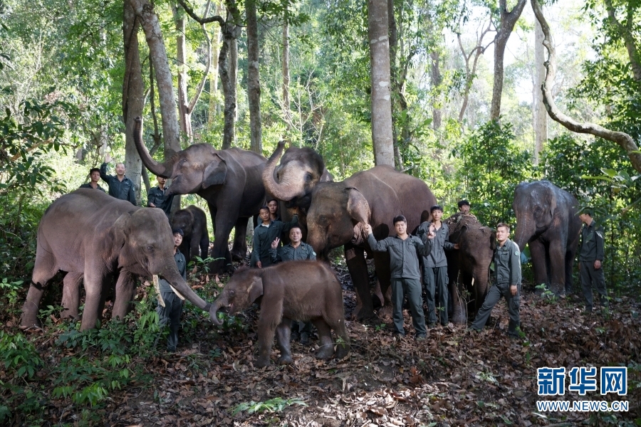 亚洲象和“象爸爸”们(资料图)。新华网发(西双版纳亚洲象救护与繁育中心 供图)