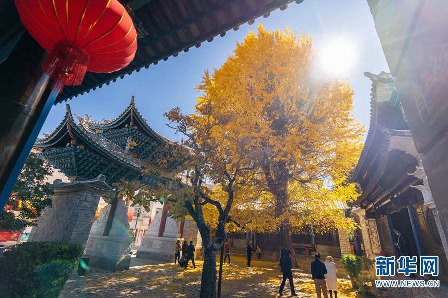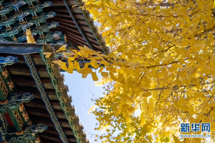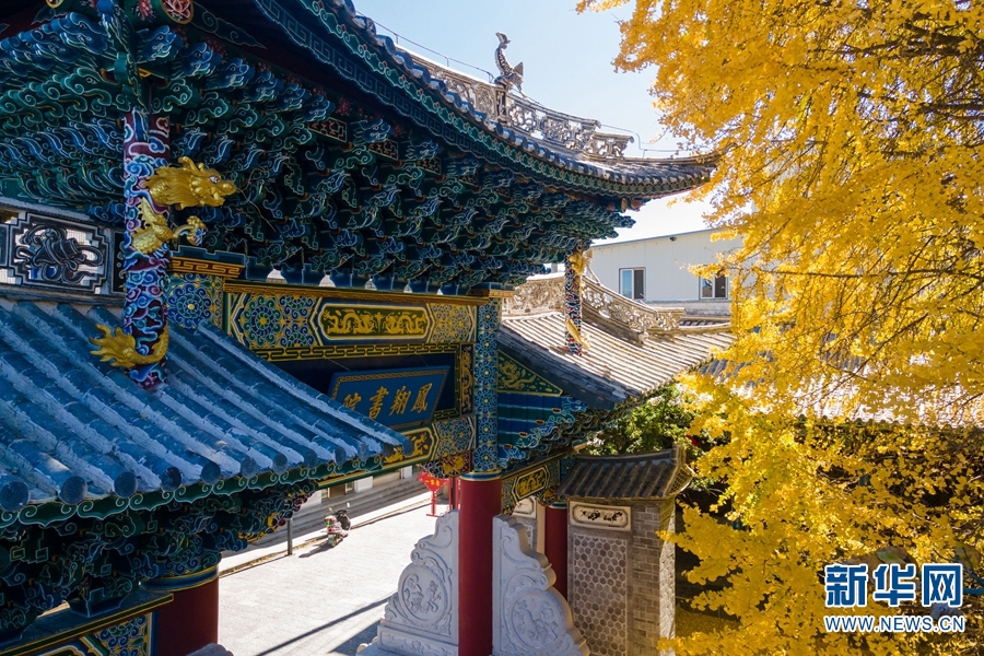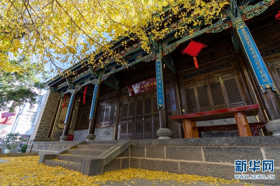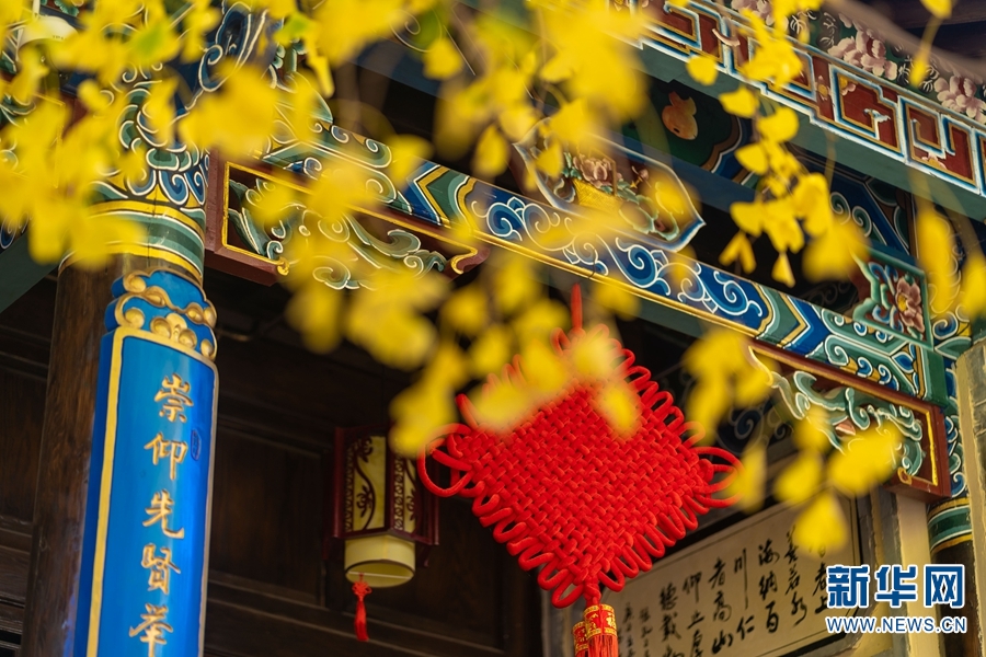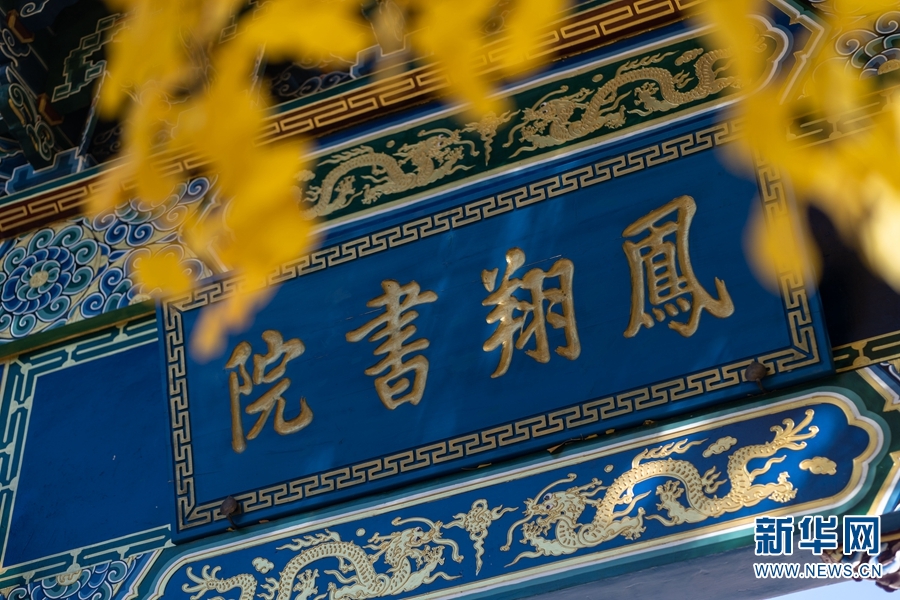凤翔书院内,银杏飘金。新华网发(罗新才 摄)