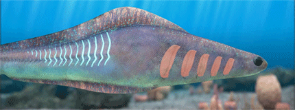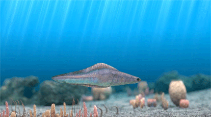 寒武纪生命大爆发可以被看作是如今动物多样性的一个“起源点”。以脊椎动物为例,在澄江化石地世界自然遗产博物馆,可以找到最古老的脊椎动物之一——一只3厘米左右的小鱼“昆明鱼”。虽然昆明鱼的个头很小,但它已经出现大脑、心脏和脊椎。在寒武纪大爆发中诞生的昆明鱼是最古老的原始无颌鱼。无颌类最主要的特征是缺乏上下颌骨,在其他许多方面也非常原始。它们主要依靠身体的扭动而不断前进。昆明鱼是极少数有脊椎的底栖动物,绝大多数时间活动在水体的中层空间或近洋底。