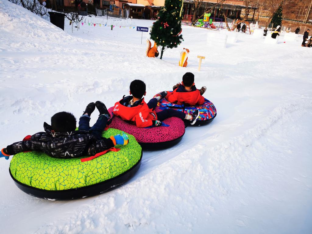 图为小朋友在北京市怀柔区渤海镇六渡河村体验冰雪项目。(采访对象供图)