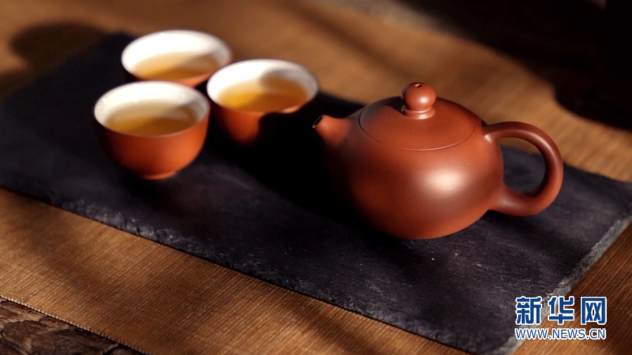 手拉壶的泥料为朱泥,烧制后转红色。其质地细柔且不含砂,可塑性很强。新华网发(林堉 摄)