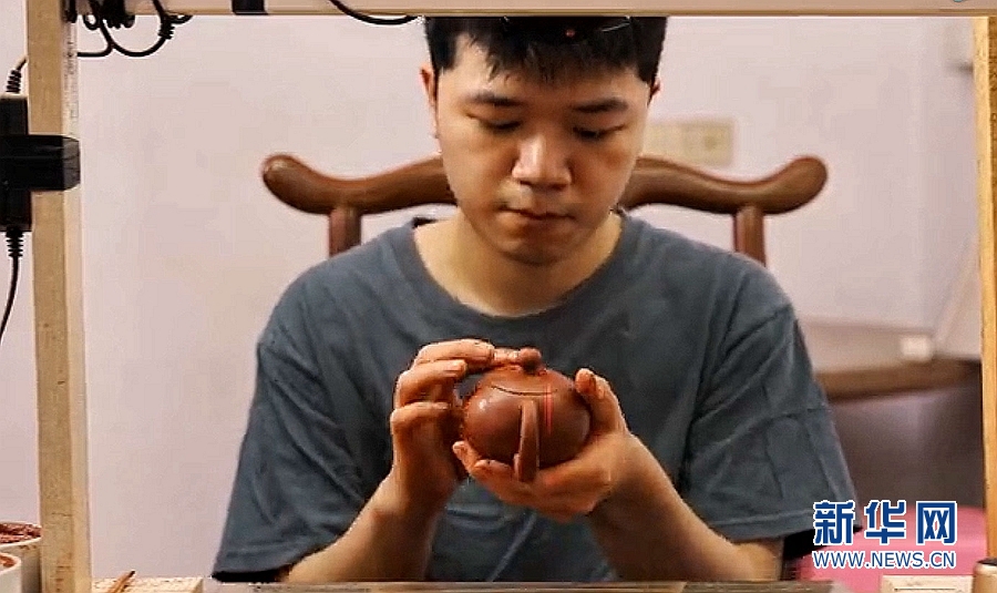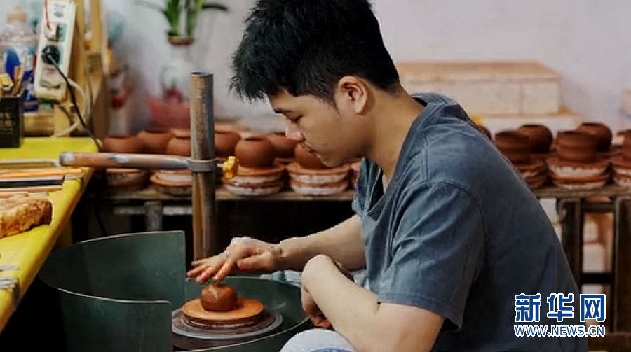吴炫杰未来的目标是做出精美的壶。新华网发(林堉 摄)