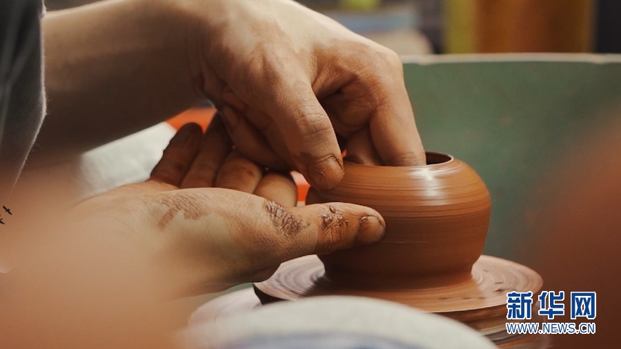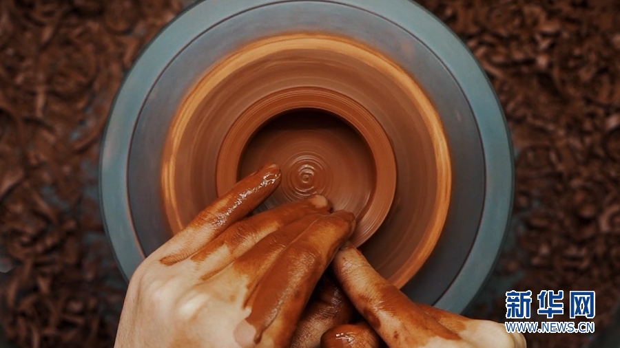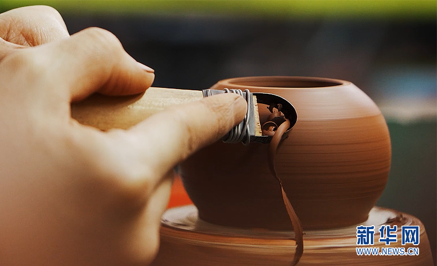 壶的制作采用古老的辘轳手拉方法。新华网发(林堉 摄)