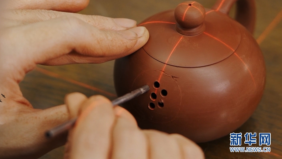 吴炫杰认为,做壶最难是壶盖和壶身的高契合度。新华网发(林堉 摄)